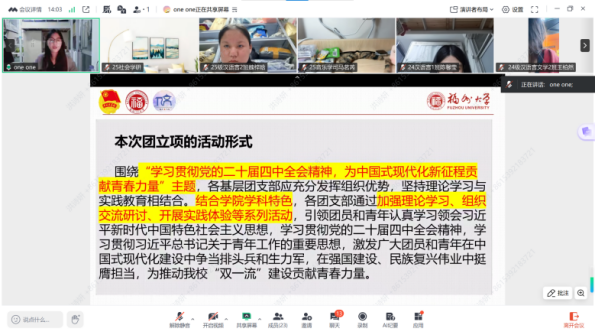 会议指出,“团立项”是以特定主题为主线,由各团支部结合学科专业特色,系统策划并开展形式多样的团内活动。本年度主题聚焦“学习贯彻党的二十届四中全会精神,为中国式现代化新征程贡献青春力量”,鼓励各支部通过理论研学、实践服务等多种形式,引导广大团员在学思践悟中融入时代大局、担当青春使命。
