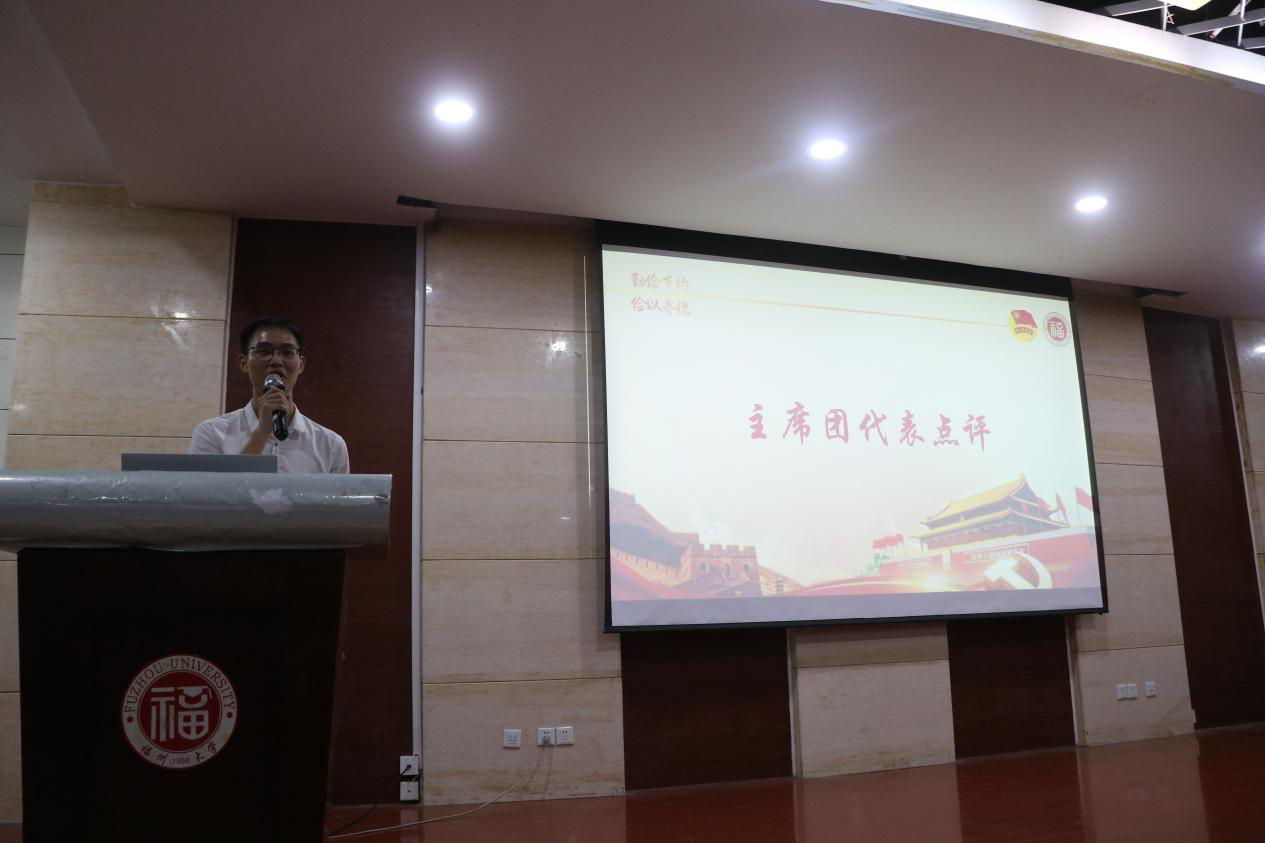 随后,学生会主席代表王子强对各支部的精彩展示提出表扬,并希望各团支部可以紧密结合专业特色,做到“一支部,一品牌”,对团立项活动保持时效性与长效性寄予厚望。接着,房菁辅导员对18级团支部团立项活动的显著进步、19级团支部活动形式的丰富多样、20级团支部用心认真的态度表示肯定,并鼓励各团支部走出校园、走向社会,进而增强团立项活动的社会辐射力。在活动的最后,齐朝阳书记结合自身参与校级团立项活动评比的经历,深化了各团支部对团立项这一集体活动的认识,同时为团支部建设指明了前进方向——调动同学的积极性和创造性,增强团组织凝聚力;结合本专业知识,建设品牌特色团支部;充分利用新闻媒体,扩大社会影响力。