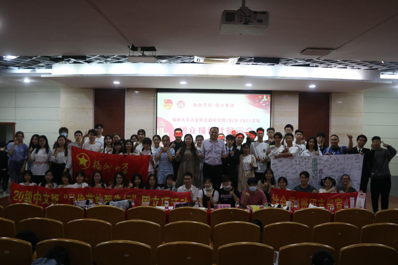 活动伊始,20级汉语言文学团支部以“诵读经典,品读美德”拉开了本次成果展示会的序幕。接着各团支部成果也相继亮相——19级社会学团支部展示了其支部收集的各高校“光盘行动青年网”视频;19级应用心理学团支部向观众播放了其原创心理情景剧视频,充分体现专业特色;18级汉语言文学团支部创新宣传媒介,“以声传情”,用声音传递“以勤养志、以俭修德”的使命感和责任感;19级汉语言文学团支部现场模拟寓教于乐的活动形式,以笔墨书画勤俭,以诗歌弘扬美德;20级社会学团支部则以宣读“勤俭节约,艰苦奋斗”承诺书的形式,呼吁现场观众一同“厉行节约,俭以养德”。