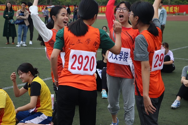 在“卓越人文,精彩绝伦”的口号声下,她们无所畏惧的向前冲刺,完美的递棒、接棒,传递着团结、拼搏的精神,最终以1:02.2的成绩斩获第6名。
