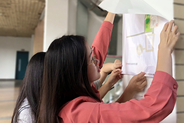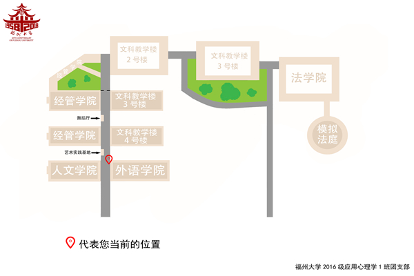 福州大学校园占地面积广阔,文科教学楼区域更是曲折复杂,原有的道路指示牌悬挂高处难以看清,初来乍到的新生以及方向感欠佳的同学常在此迷路。基于此种情况,16级心理班的成员借助“工程心理学”中用户设计方面的专业知识,自制了针对上述情况考量的简洁版地图。设计过程中图纸前后共经过3次调整改良,汲取了老师与其他同学的建议,还征集同学进行了使用性测试。小地图正式投入使用后,取得了良好的效果。有同学对设计的作品做出评价:“连我这种不会看地图的人,都能很轻松地看懂,感觉方便了很多。”