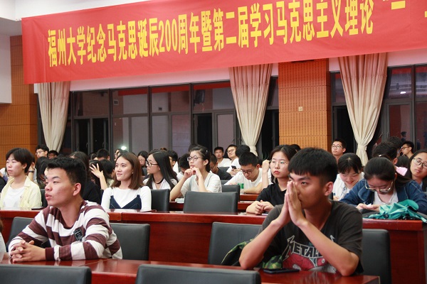 6月1日晚6点,福州大学纪念马克思诞辰200周年暨第二届学习马克思主义理论“一马当先”知识竞赛决赛于行政北楼西325教室举办。本次竞赛由福州大学学生工作处主办、易班工作站承办,共有6名本科生、6名研究生进入总决赛。成人网社会学林阿凉同学从网络海选、笔试初赛、现场半决赛等多个环节中脱颖而出,顺利进入本科生组总决赛。