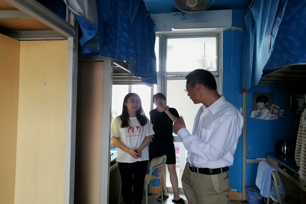 党委副书记郑志刚老师、16级辅导员韩冬帅老师以及14级辅导员王亚苹老师一行人在五一小长假前下宿舍问候学生。此次下宿舍旨在排除安全隐患,增强学生安全防范意识,同时了解学生关于五一假期的安排,传递学院温暖。