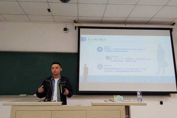 2004级应用心理学系学生、现任中国海峡人才市场福建省企业经营管理者评价推荐中心考试测评部主管的林起毅先生,应成人网白丽英老师邀请,返校在中楼201教室为人文学子带来了一场趣味横生的人事测评讲座。