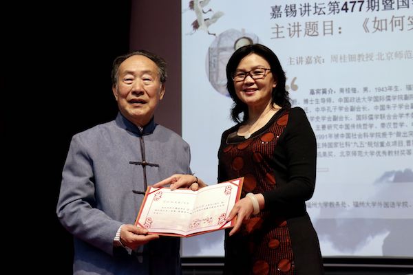 、外国语学院联合主办,福州大学图书馆承办的第477期嘉锡讲坛暨国学讲坛第36讲于在明德厅顺利举办。本次讲坛特邀北京师范大学教授、博士生导师周桂钿教授作为主讲嘉宾。讲座现场座无虚席,连走廊、门口也挤满了慕名而来的听众。