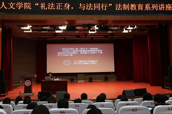学法辩是非,守法践于行,礼法广宣传,校园更和谐。本次讲座不仅普及了法律知识,使大学生进一步了解法律,更提升了大学生的法律意识。礼法正身,人文同行。