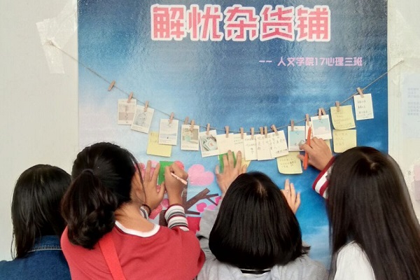 17级应用心理学3班的“解忧杂货铺”于11月12日到11月22日在福州大学玫瑰园一楼门口“开张”。