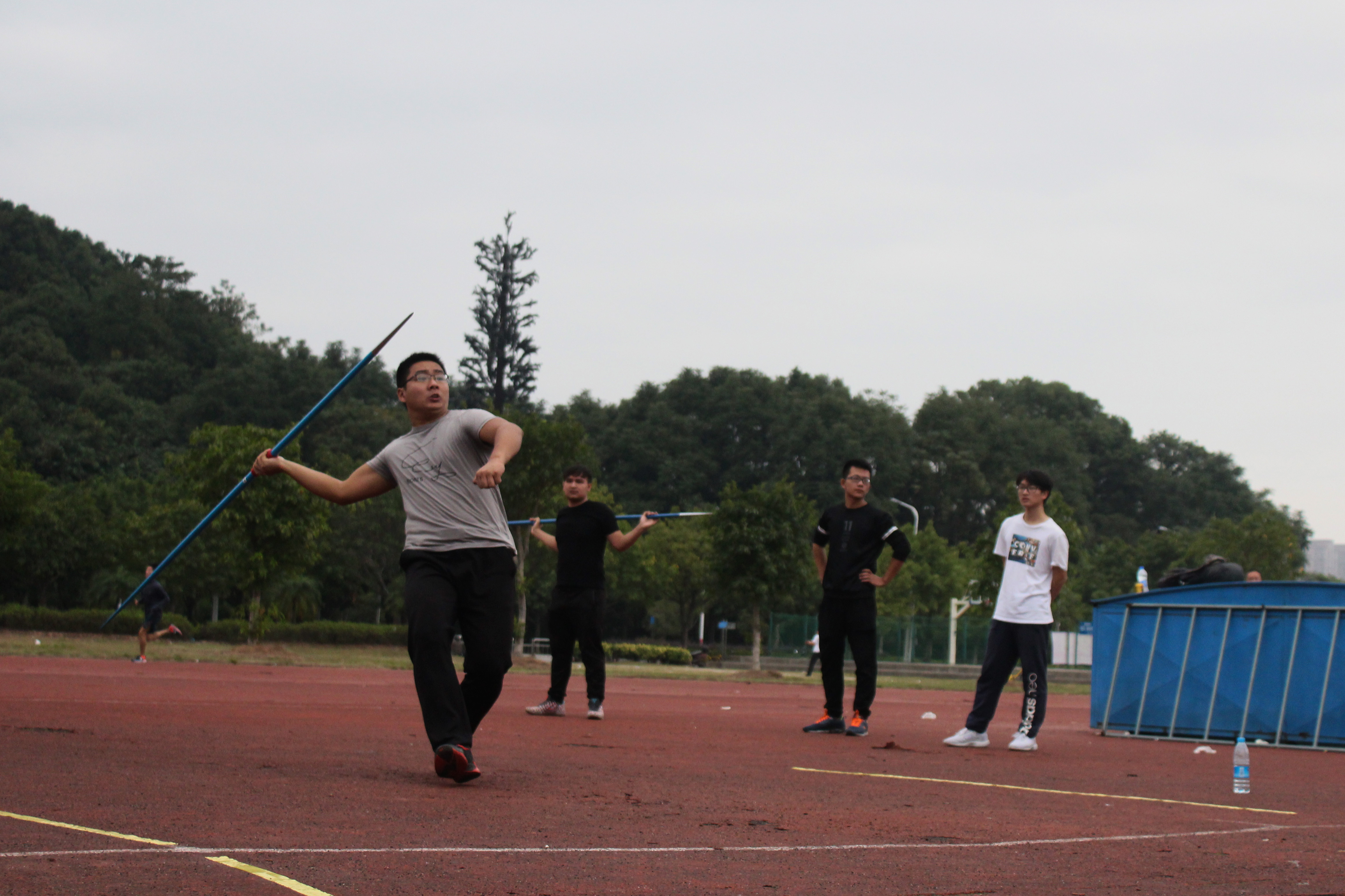 11月16日上午9点,男学乙标枪决赛在三区外场如期举行。来自成人网的蔡军强同学手持标枪,在区域内助跑数步后,将标枪以一个优美的弧度掷出,充分展现了运动的魅力,也向同学们展示了勇于拼搏的精神。虽然第一掷出现了失误,但接下来的每一掷蔡军强同学都用尽全力,发挥稳定。当标枪过线落地时,蔡军强同学激动地呐喊奔跑,充分展示了拼搏的魅力。
