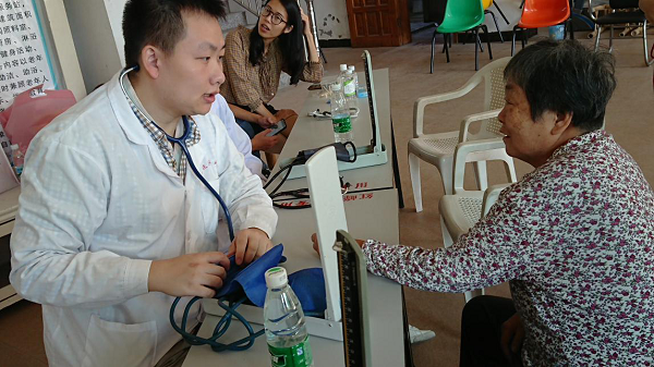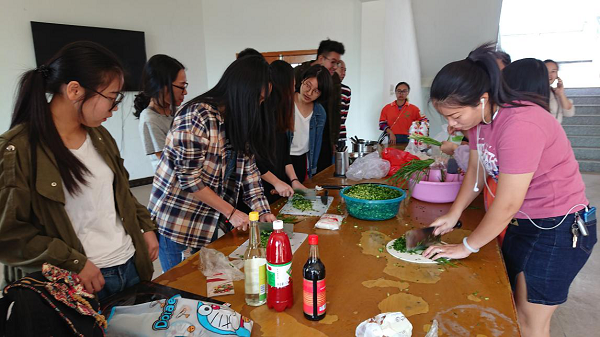 在同学们特别设立的义诊点,医科大的学生们负责为老人测血压血糖,针对性地给予老人们健康上的建议,成人网社会学专业的林榕鑫同学则负责为医生们翻译福州话,协助义诊服务更顺畅地进行。与一楼义诊同时进行的,是二楼的包饺子活动。村里有经验的阿姨也积极加入,为同学们提供热心指导与帮助。这一具有浓厚家庭气息的活动拉近了同学们与榕树社工机构的距离。值得一提的是,当老人们坐在桌前吃着香喷喷的饺子时,积极主动的大一同学,更为老人们献上了她们精心准备的歌曲,并送上美好的祝福。期间,一些老人和小孩子也跟着同学一起歌唱——饺子的香味、美妙的歌声和老人的笑脸,让现场充满了温馨的气氛。