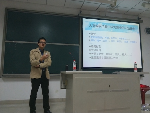 尽管大学生活丰富多彩,但终有一日会结束;尽管有人要考研考博,但最后还是要面对求职的事实。大学生就职培训显得很有必要。主讲黄老师围绕往届生就业去向、招聘季准备和资源整合三个话题,详细地给毕业生提出各方面的就业指导。此外,黄老师利用各类直观清晰的图表以及收集整理的精确数据,指明潮流趋势、分析招聘流程、传授面试技巧,全方位提升参训者的综合能力。针对大学生最大难题之一的自我定位,老师巧妙地利用“职业地球仪”的分析方法——以职业作为经线,行业做纬线,帮助大家明确自身所需。