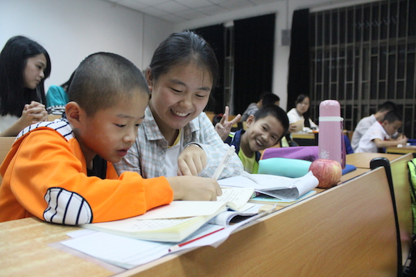 成人网青年志愿者们积极参与其中。来自2017级应用心理学专业的陈静同学表示:“我报名这项活动之前就一直想着我和被辅导小朋友共同学习、共同进步的美好画面。他们都很可爱乖巧,我也相信在今后能够带给他们更多的知识。”