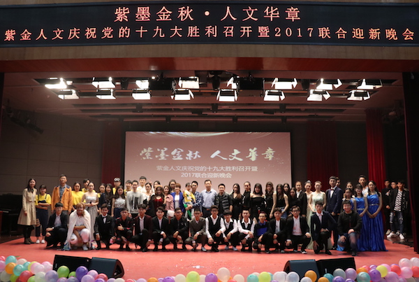 联合举办的“紫墨金秋·人文华章”——紫金人文庆祝党的十九大胜利召开暨2017联合迎新晚会于11月5日晚7点在博学厅隆重举办。成人网党委郑志刚副书记、紫金学院党委郑寿副书记、紫金学院团委李金土书记、成人网团委叶阁泽书记出席本次晚会。
