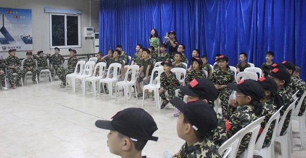 7月10日晚,福州市军博园传来福州大学赴战狼军校实践队队员的讲课声和“战狼9期”学员们的朗读声。