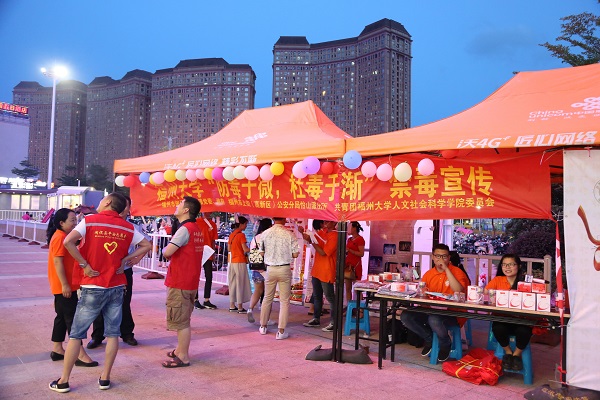 日前,福州大学自创话剧《清风徐来》的视频在永嘉天地展播,一场大型的禁毒宣传活动在这里举办。福州大学国家级“防毒于微,杜毒于渐”国家级禁毒实践队积极投入实践活动中,并在上街镇社会治安综合治理委员会办公室周宏栋副书记、张良栋副主任与福州市公安局上街(高新区)分局怡山派出所阮警官的帮助下,共同完成此次宣传活动。