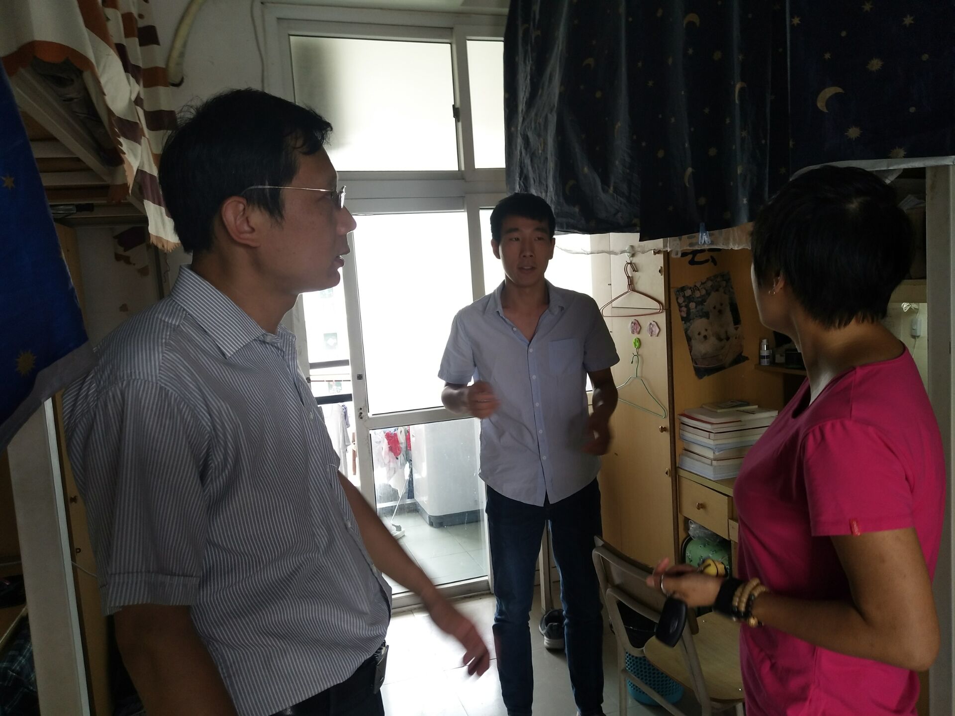 进行的第二次大规模、全方位的学生宿舍安全隐患大排查。排查中,郑志刚副书记带领辅导员和学生干部逐间确认宿舍安全情况,在及时指出安全隐患问题并要求当面整改的同时,也不忘与留校学生进行亲切交流,关心学生们在暑期的学习和生活情况。此外,郑志刚副书记还向现场同学强调了宿舍安全管理的重要性,希望同学们能够遵守学校规定,重视集体和自身的生命财产安全,特别是要注意用电安全,不要使用违规电器。