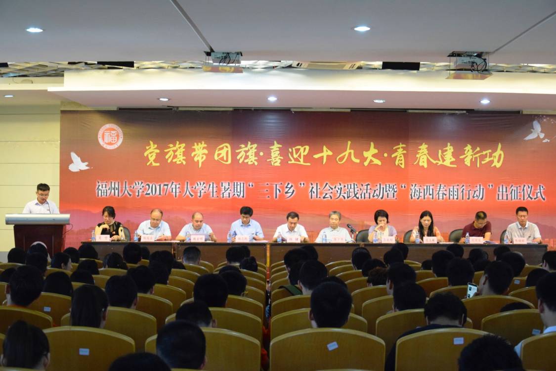 6月30日上午,福州大学2017年大学生暑期“三下乡”社会实践活动暨“海西春雨行动”出征仪式在旗山校区大学生素质拓展中心学术报告厅顺利举行。伴随着雄浑嘹亮的国歌声,出征仪式正式开始。