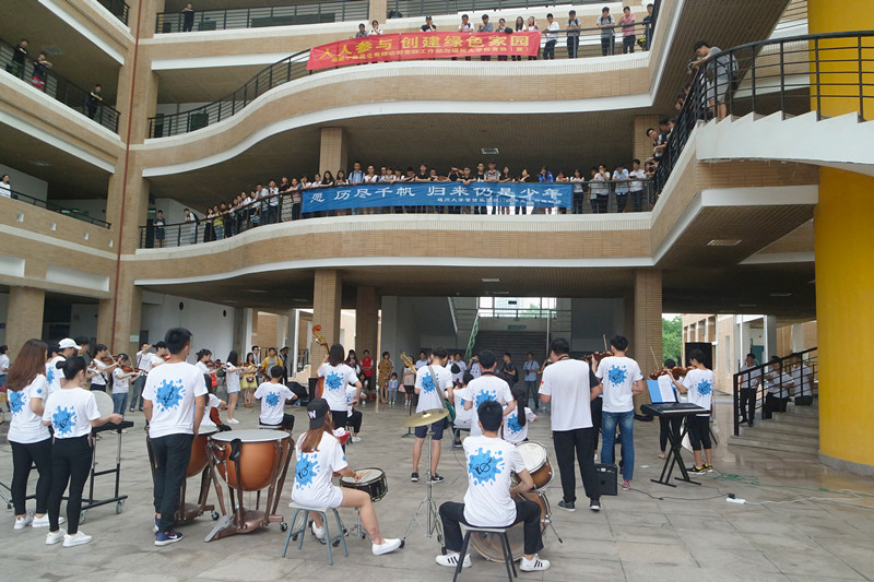 据悉此次活动是来自福州大学管弦乐团的成员所进行的一次音乐快闪活动,既是为宣传世界环境日、提醒大家保护环境,同时也是为纪念福大管弦乐团成立五周年,更是为即将毕业的学长学姐进行的送旧活动,为他们的大学时光画上圆满的句号。此次活动中成人网音乐系王盺野老师担任指导老师。